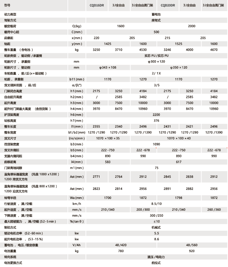 前移車系列CQD16/20-E4C5前移式叉車(高配座駕式)